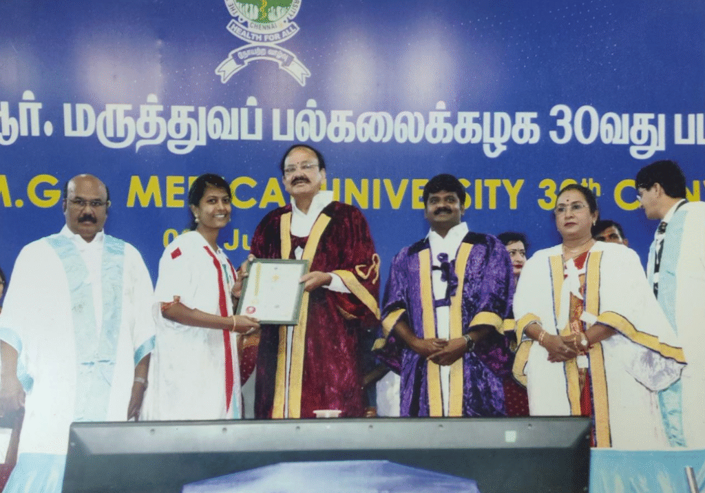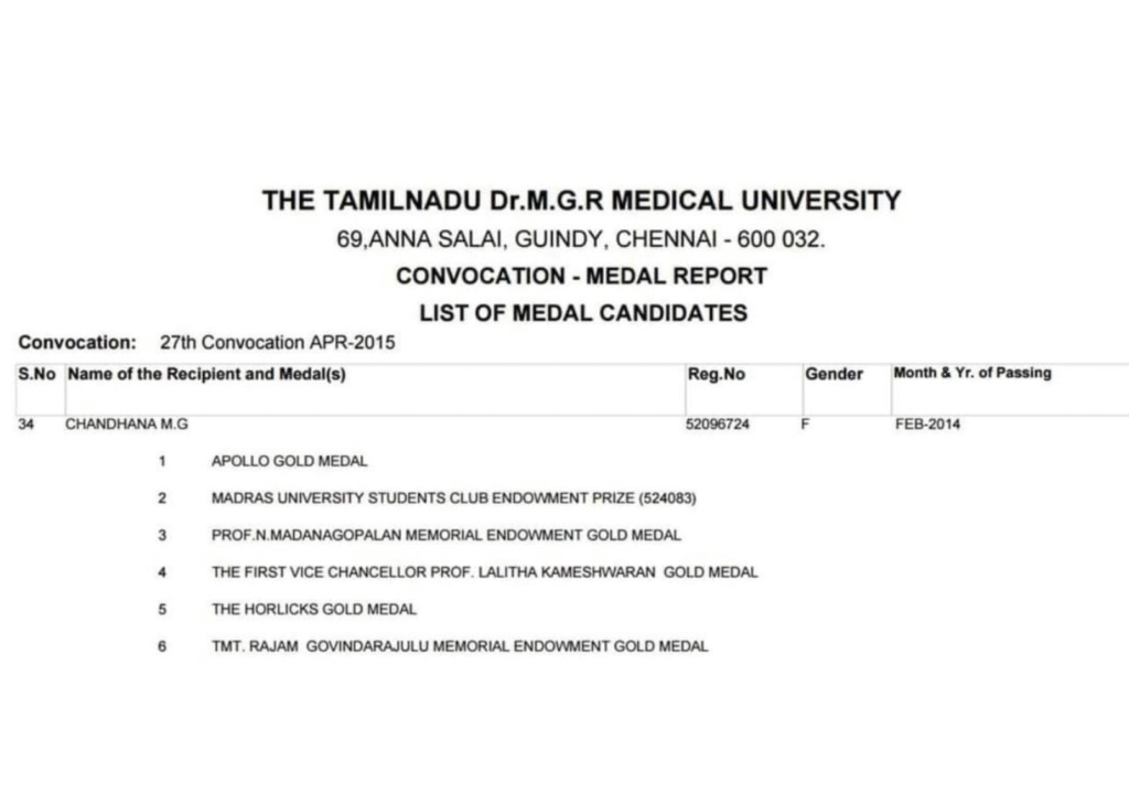 Dr. Vannamalar (MBBS Batch of 2013) on securing 9 awards and medals from the Dr. MGR Medical University.