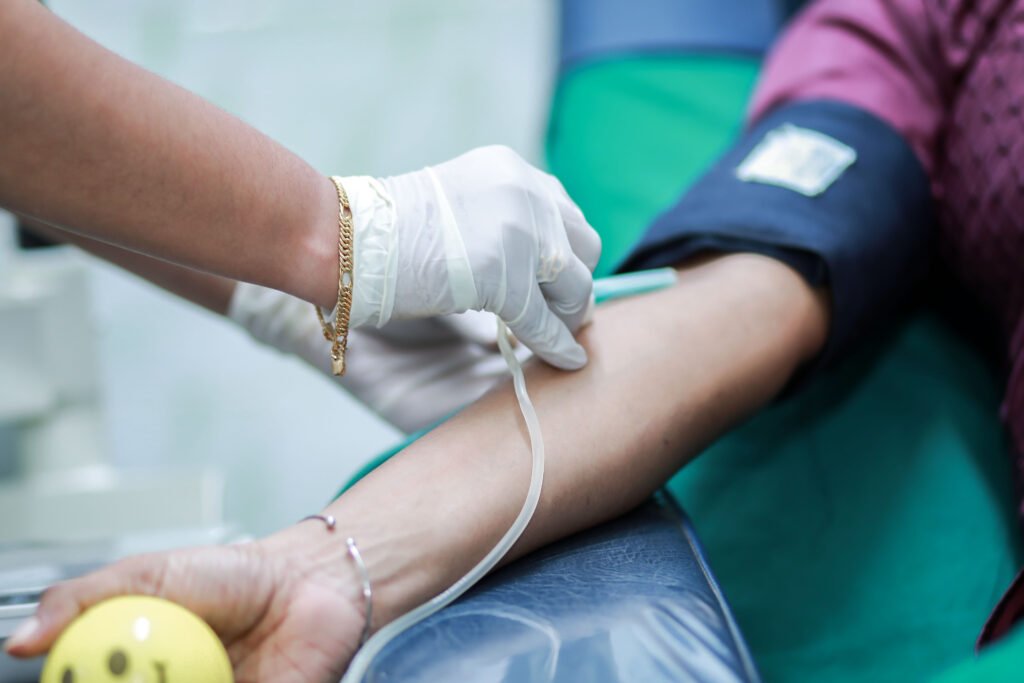 The donation process typically takes 10–15 minutes and is performed using sterile, single-use equipment to ensure safety.