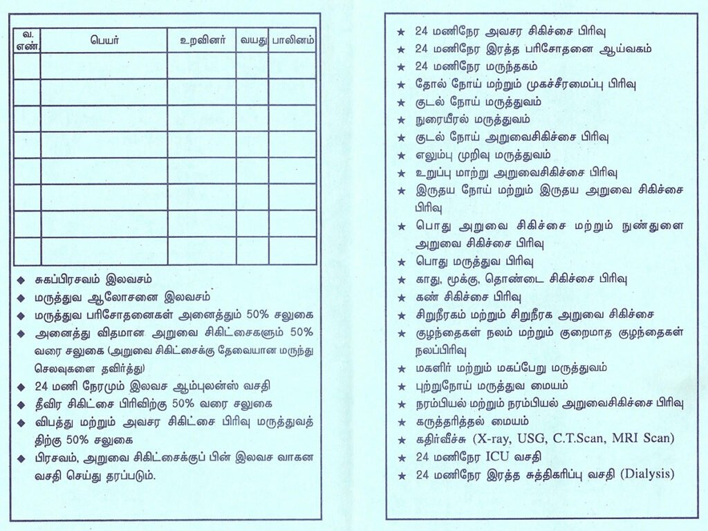 This work continues on a regular basis too in the form of free camps for forest tribals, fishermen communities, and followed by subsidised to free inpatient treatment. The Sree Mookambika Health Card, and Sree Mookambika Vanashakthi card schemes stand proof of this yeoman service to the community.