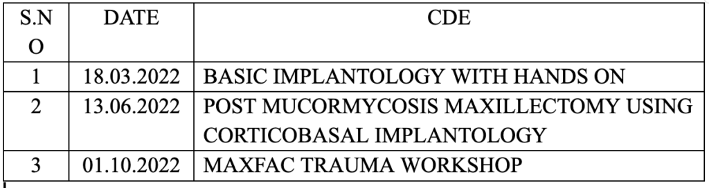 Oral and Maxillofacial Surgery is a branch that deals with the art of diagnosis and treatment of various diseases, pathologies and defects involving the facial region. This specialty has evolved through the ages and presently the Oral and Maxillofacial surgeon deals with various craniofacial pathologies in a multi disciplinary environment. The Department offers an under graduate and a three-year post-graduate teaching programme leading to a Masters degree awarded by the Tamilnadu Dr. MGR medical University. This program is approved and accredited by the Dental Council of India. The section of Oral and Maxillofacial surgery has a varied scope. The under graduate program deals with extraction of teeth and the complications arising, subsequent management, along with the management of medical emergencies on the dental chair. The post-graduate program beginning with complicated extraction goes on to involve major surgical procedures. Various research projects are also allocated to students to train them in research methodology.